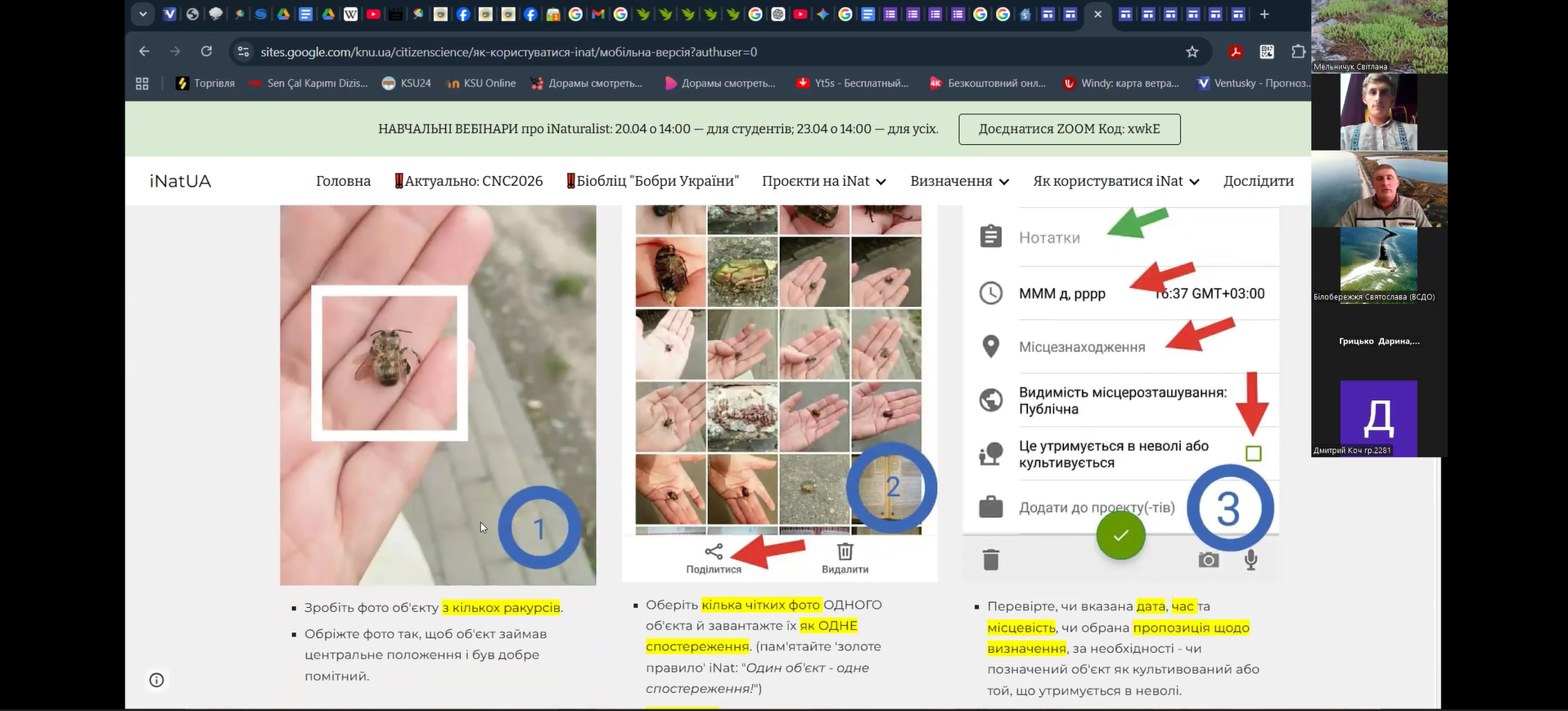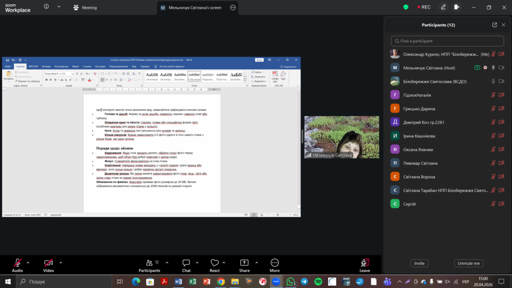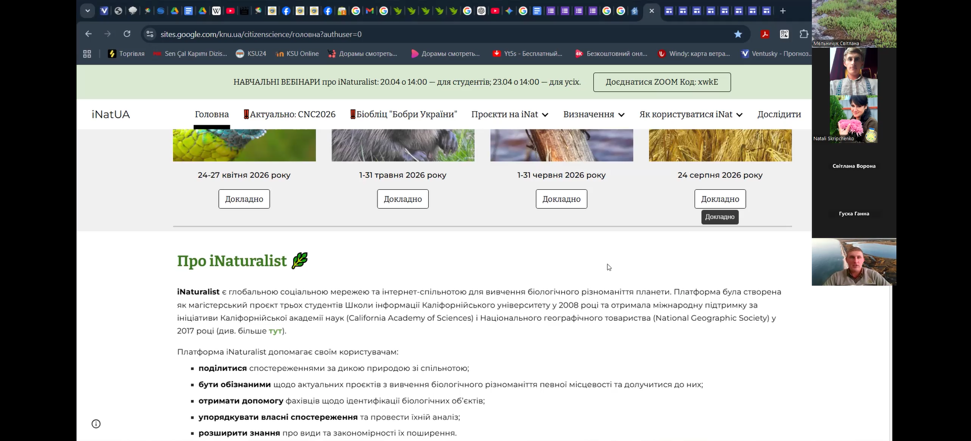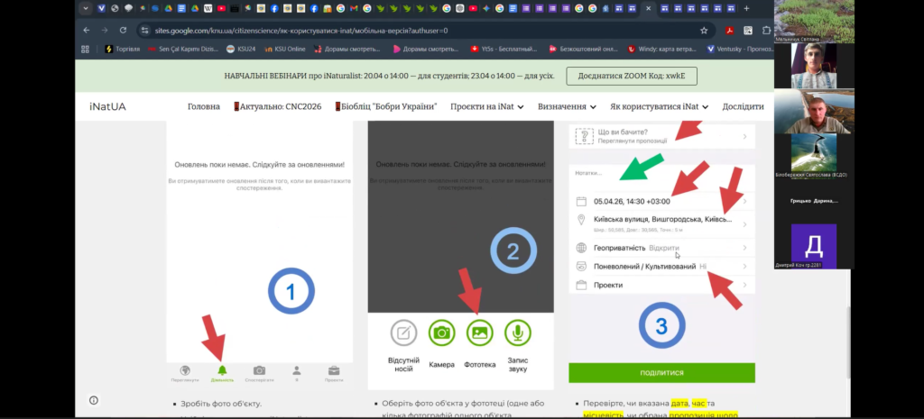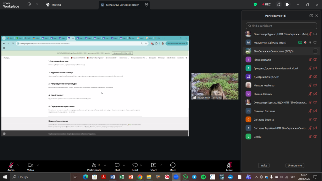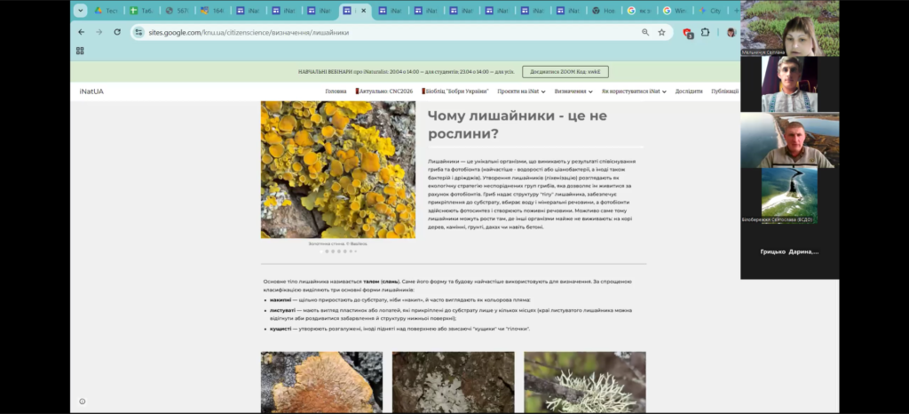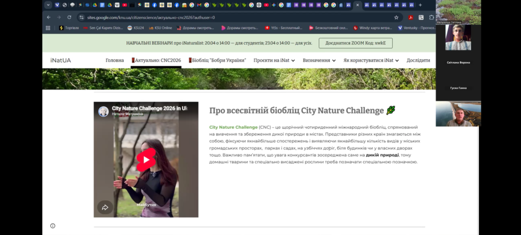 16 квітня 2026 року відбулося друге навчальне заняття від співробітників національного природного парку «Білобережжя Святослава» в рамках реалізації проєкту у міжнародному конкурсі з фіксації біорізноманіття City Nature Challenge (CNC). Практичний вебінар на тему «Полювання на біорізноманіття: місія City Nature Challenge 2026» відбувся для учнів та вчителів (Online), які дізналися про всі секрети iNaturalist:
