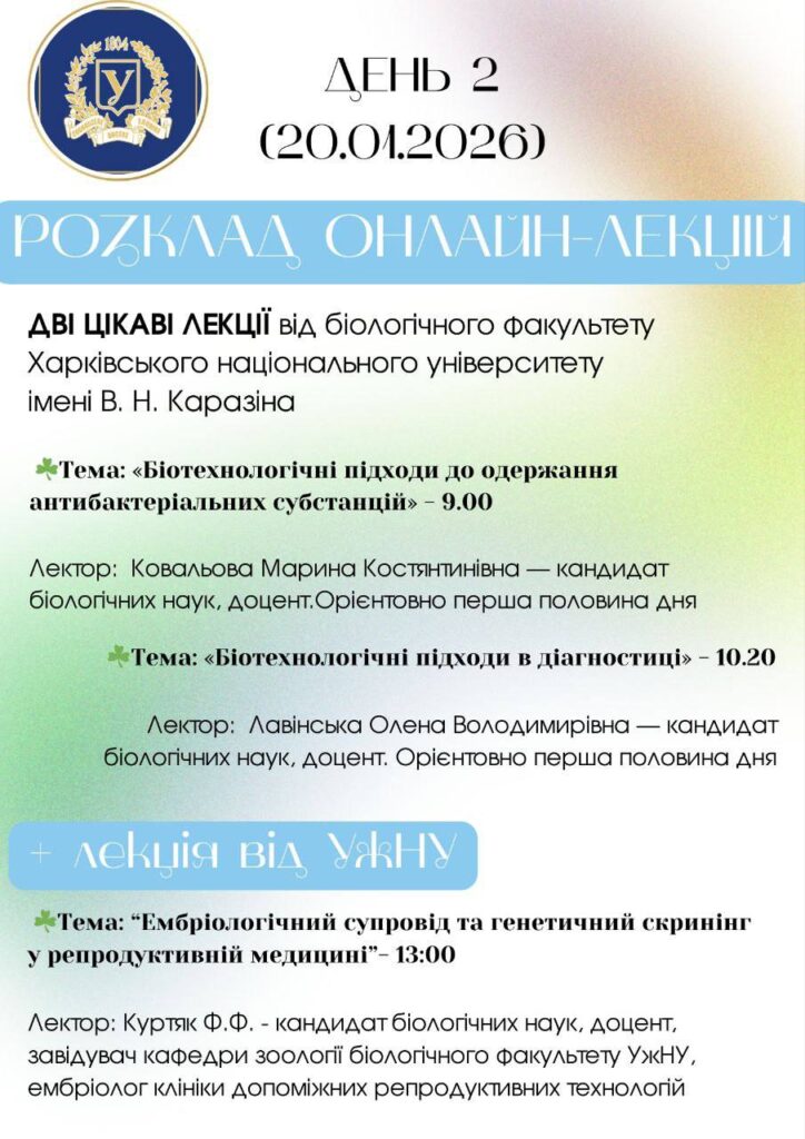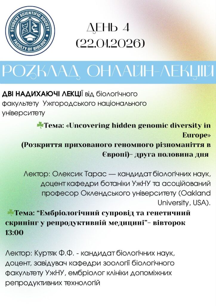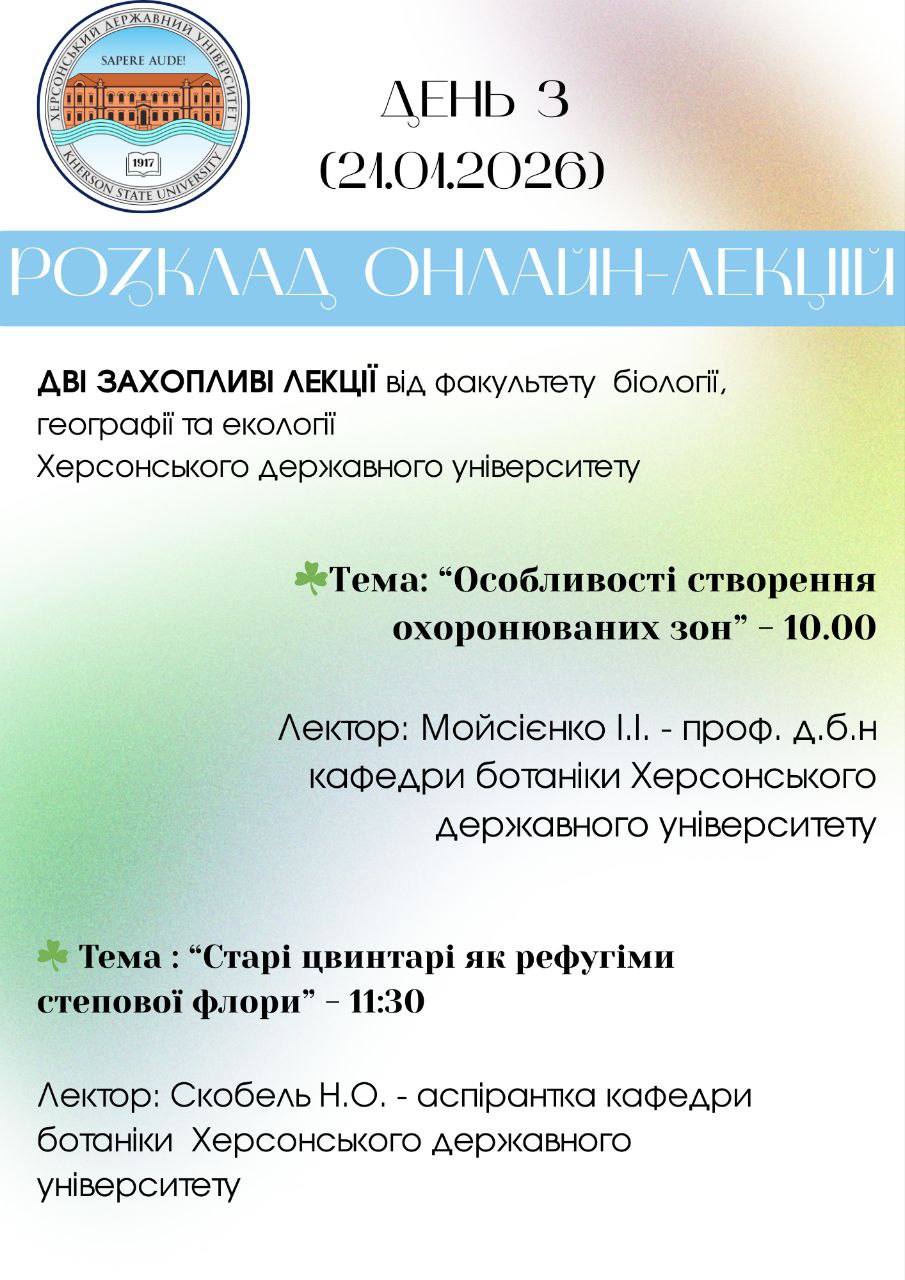 З 19 по 22 січня працівники НПП “Білобережжя Святослава”, в тому числі, працівники Покровсько-Хуторського ПНДВ, із задоволенням та цікавістю прослухали онлайн – лекції (платформа Zoom) на “Зимовій біологічній школі 2026 р.”. Дякуємо викладачам (лекторам) факультетів біологічного спрямування Тернопільського національного педагогічного університету ім. В. Гнатюка, Харківського національного університету ім. В.Н. Каразіна, Ужгородського національного університету, Прикарпатського національного університету ім. В. Стефаника, Херсонського державного університету та Львівського національного університету ім. І. Франка за цікаві та корисні лекції!