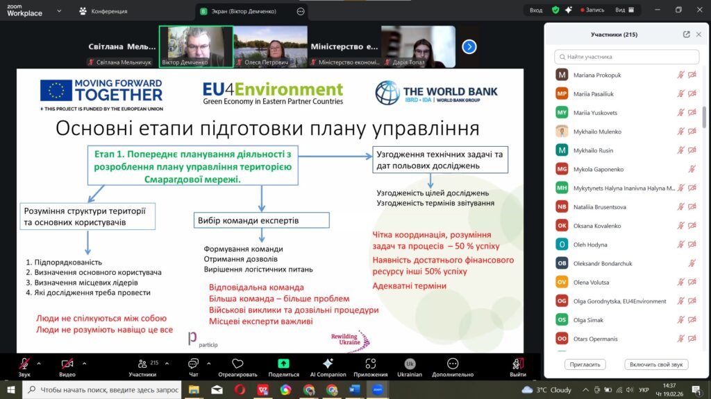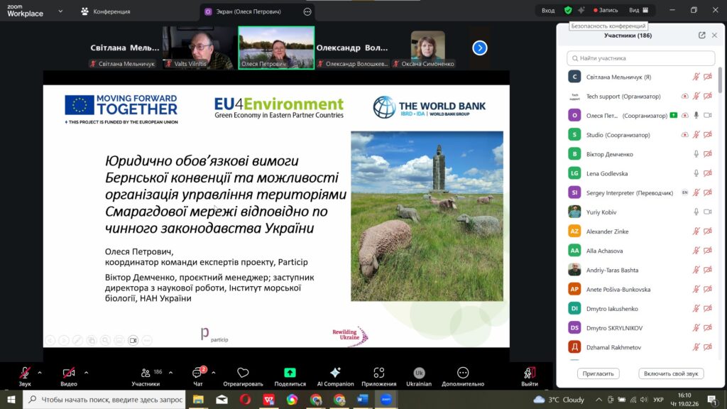 19 лютого 2026 року працівники Національного природного парку «Білобережжя Святослава» взяли участь у онлайн семінарі “Розвиток Смарагдової мережі в Україні – практика та перспективи управління спеціальними природоохоронними територіями”.