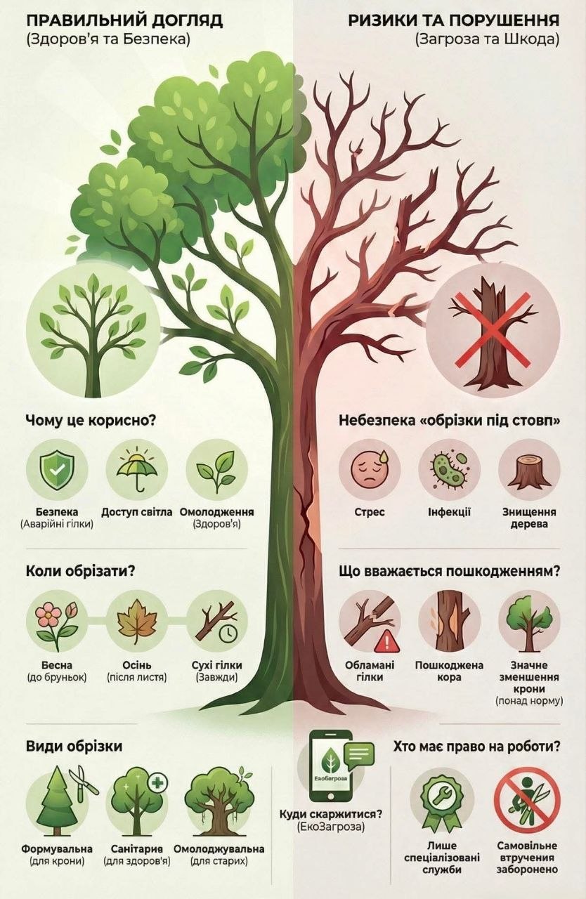 Обрізка дерев у населених пунктах – поширена практика, але важливо розуміти: це не лише про «естетику», а й про баланс між доглядом і шкодою для природи👇