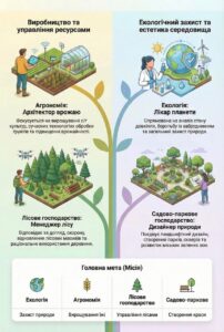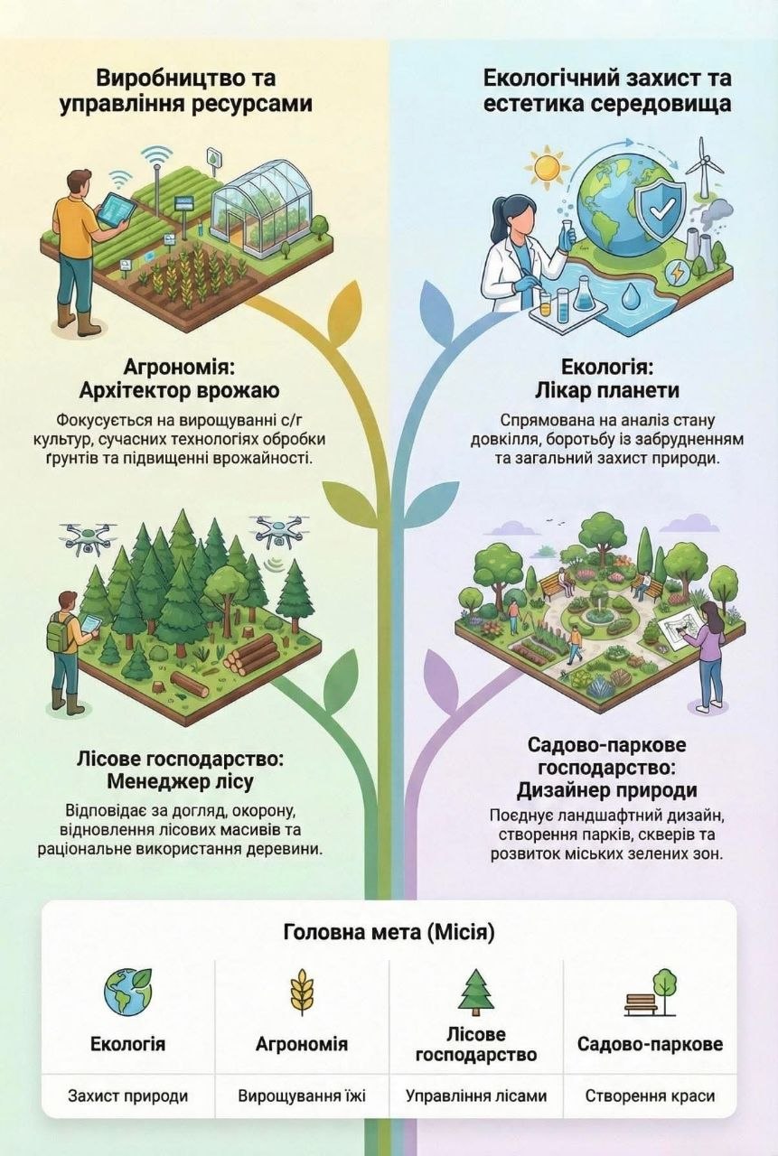 🌿 Екологія, агрономія, лісове господарство та садово-паркове господарство – схожі, але зовсім різні світи!