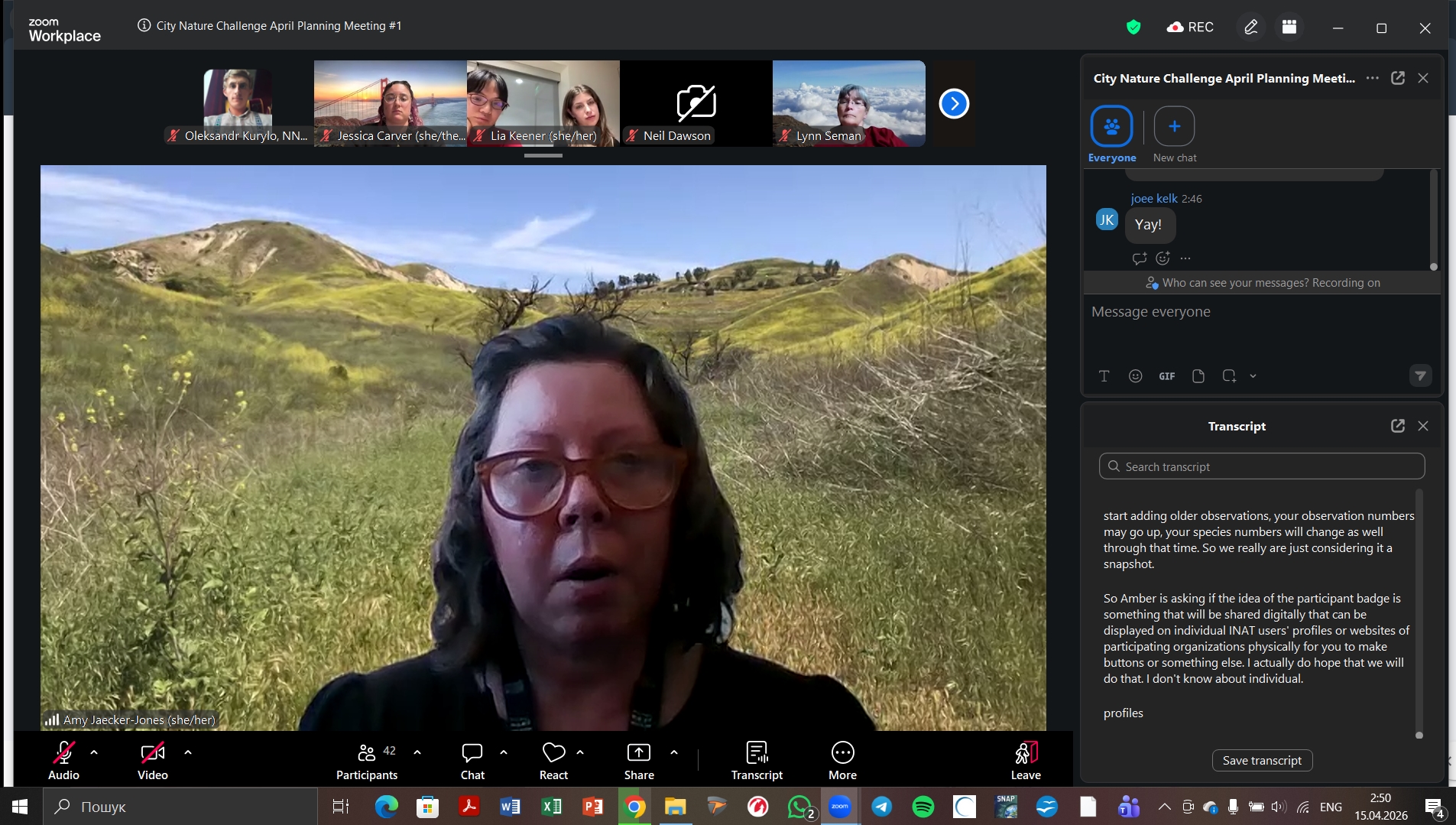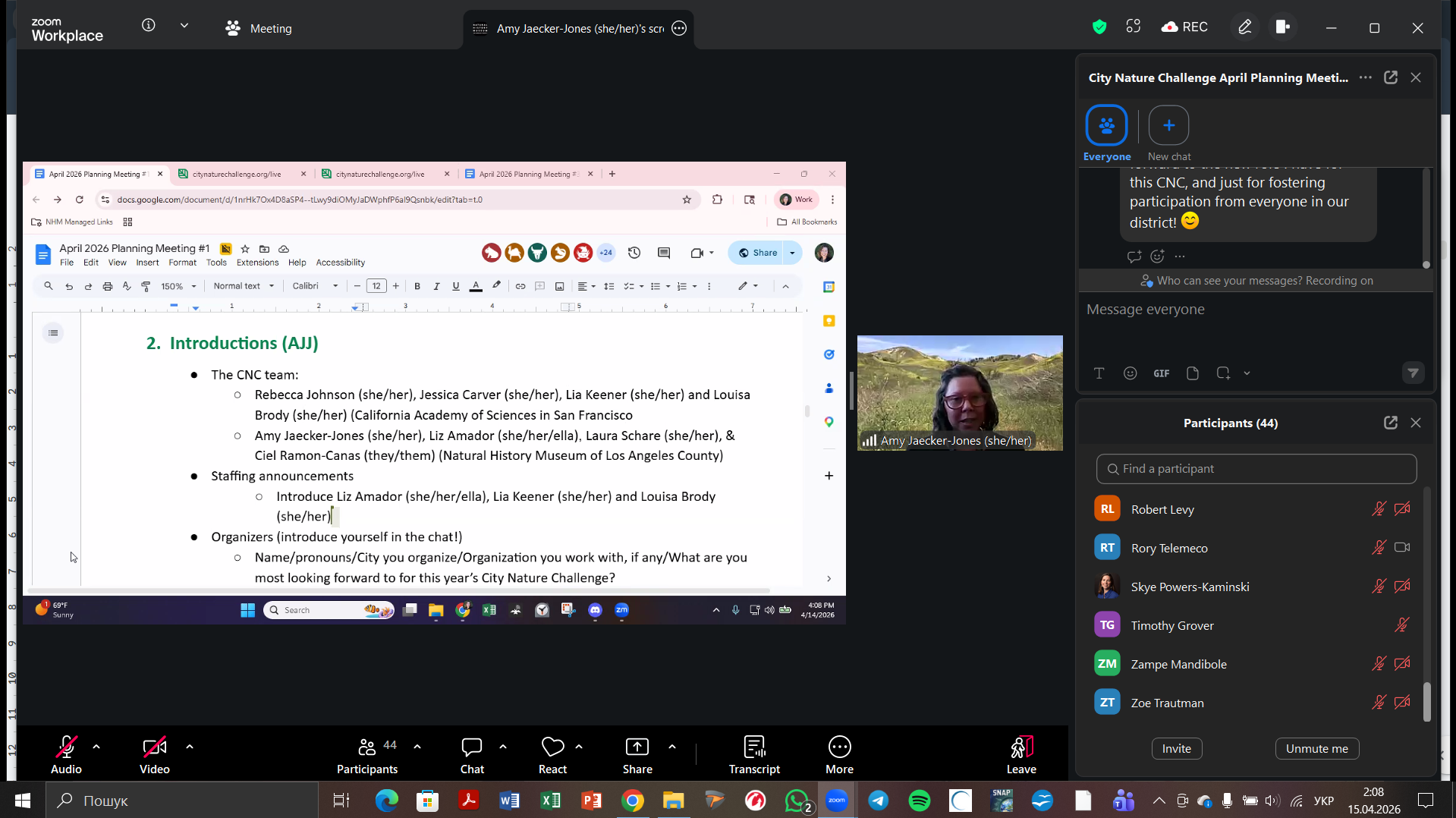 Співробітники національного природного парку «Білобережжя Святослава» долучилися до міжнародної онлайн-зустрічі на тему «City Nature Challenge 2026: Media Training + CNC Video + April Meetings», яка відбулася 15 квітня 2026 року .