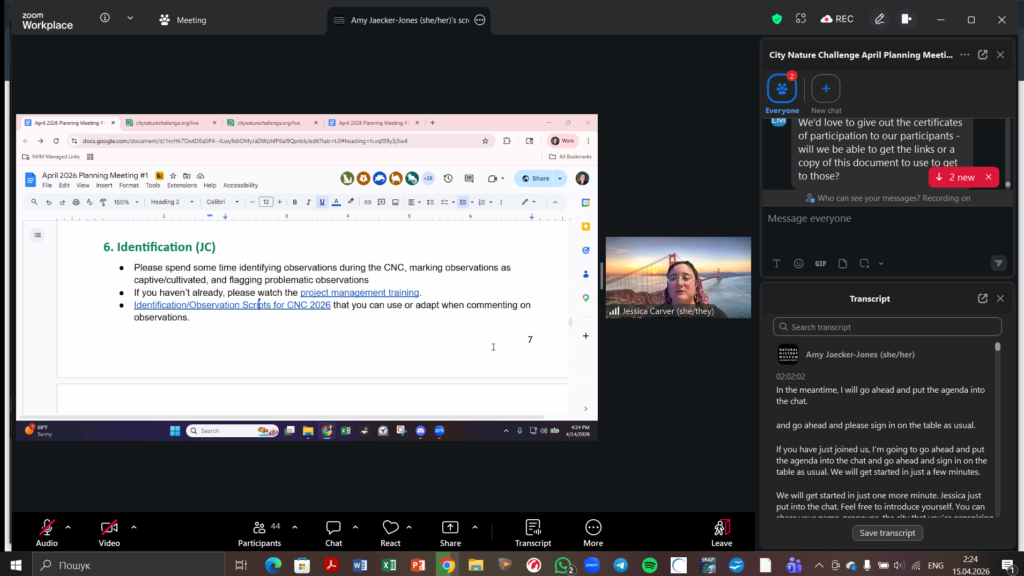 Співробітники НПП “Білобережжя Святослава” прийняли участь в онлайн-семінарі “City Nature Challenge 2026: Media Training + CNC Video + April Meetings”